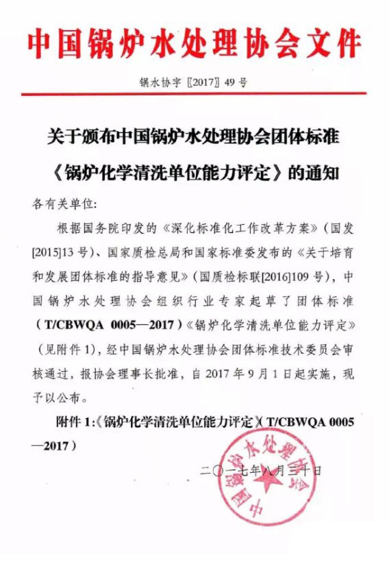上一篇:關于成立第一屆中國鍋爐水處理協(xié)會團體標準技術委員會的通知!